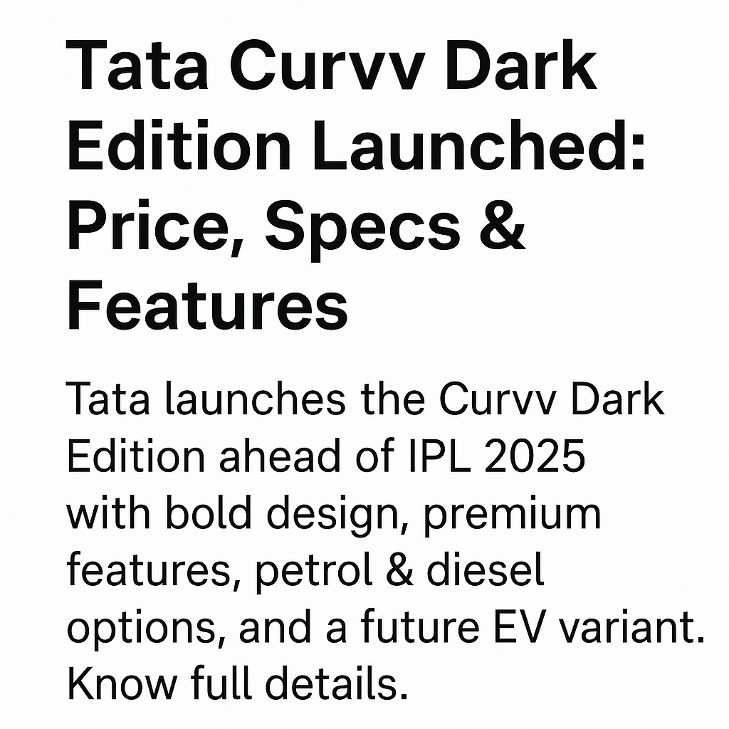 Tata Motors has officially launched the Curvv Dark Edition in India, expanding its popular Dark Edition lineup that includes models like the Harrier, Safari, Nexon, and Punch. Priced starting at ₹16.49 lakh (ex-showroom), this special edition arrives just in time to serve as the official car for the 2025 Indian Premier League (IPL) season.